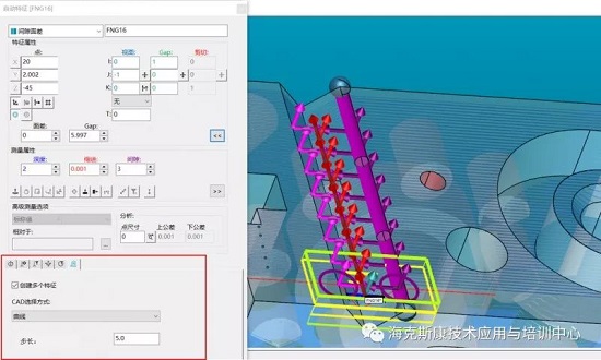 按照指定的間隔一次創建多個等間距的間隙面差特征或者棱點。