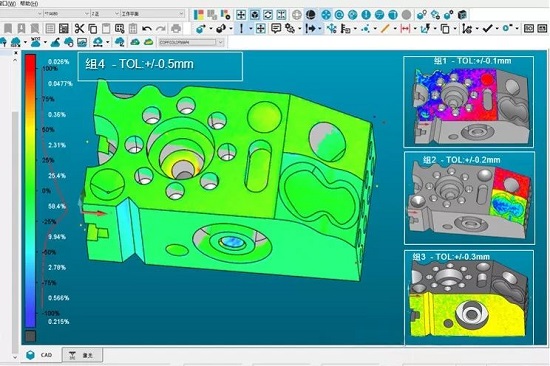 非接觸激光探測以其高效、全面的檢測能力獲得用戶的青睞,PC-DMIS Laser軟件模塊提供高效的點云收集和尺寸分析評價功能,支持點云與CAD比對,既可實現所有規則幾何特征的形位公差評價,也可對復雜曲面曲線進行色差圖分析;PC-DMIS Laser也可對收集到的點云數據進行過濾和網格化封裝處理。