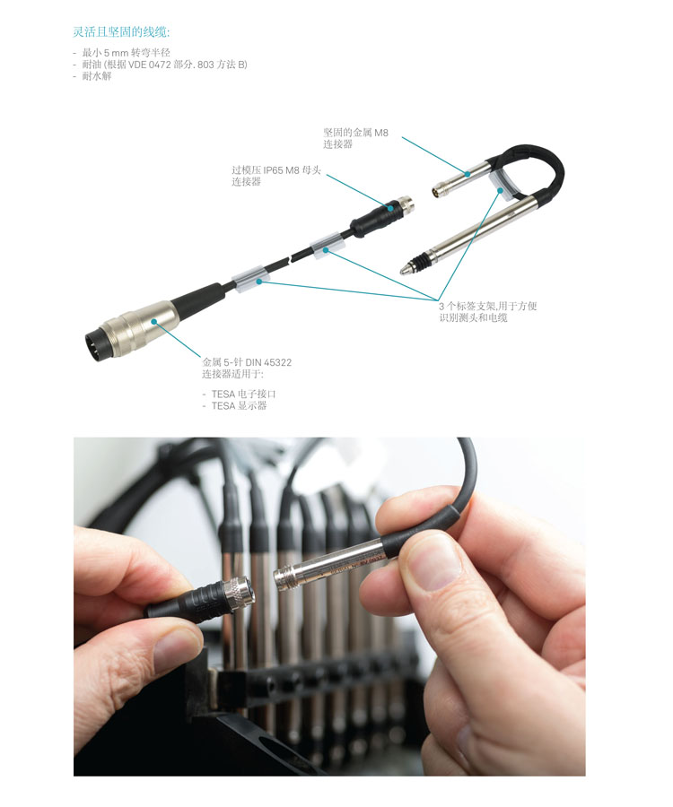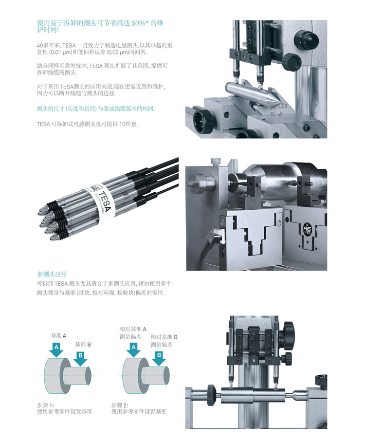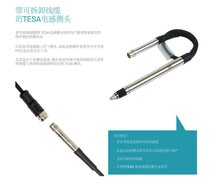 帶可拆卸線纜的 TESA電感測頭使得用戶能更快更便宜的維護他們的測量站.