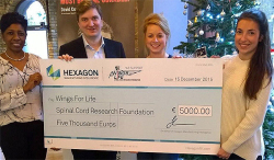 ??怂箍?/span>與“為生命插上翅膀”的關系開始于今年早些時候,集團來自世界各地的員工參加了該團體組織的慈善籌款活動 – 生命之翼全球越野跑,在全球35個地點同時進行。這一獨特的活動采用移動的“捕捉車”,而不是一個終點線,讓參加者能夠盡其所能到達最遠的距離。100%的參賽費和捐款直接投入到脊髓研究,海克斯康還替每一位員工參與者進行額外的捐贈。Carole Talbot,??怂箍抵圃熘悄苋瞬砰_發主管,到訪“生命之翼”設在倫敦的辦公室,提供€5000的慈善支票。和她一道出席活動的,是我們的業務分析專家,Oliver Jones,他在2015年生命之翼越野跑活動中,跑出了令人印象深刻的20.06公里。