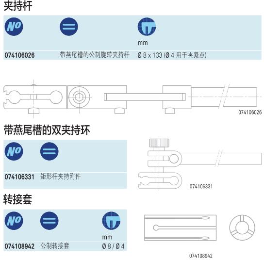 ● 帶燕尾安裝座的整體外殼,同時還有4mm的可旋轉夾持桿。