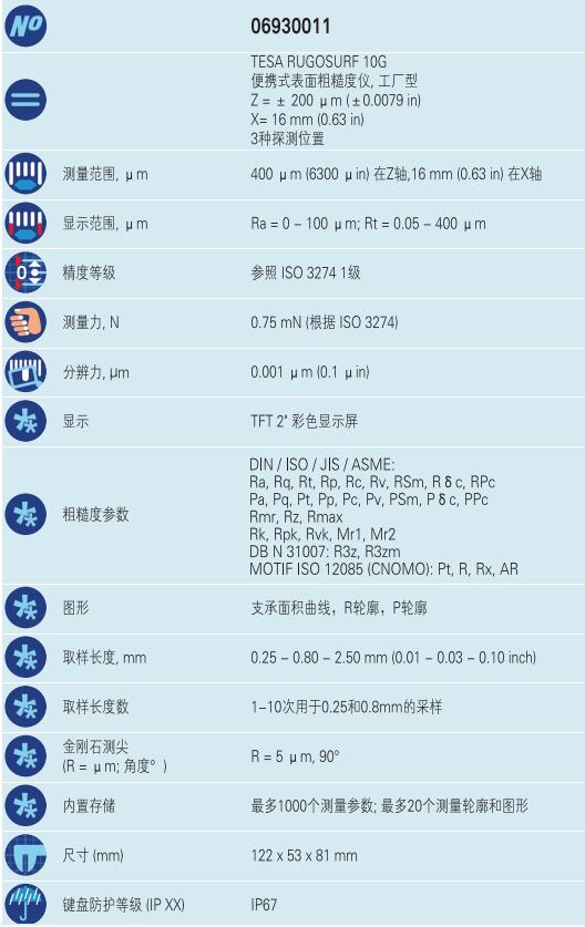 該產品的測量參數符合ISO 4287:1997,JIS B0601:2001,DIN/ISO12085:1998(MOTIF或CNOMO)標準。