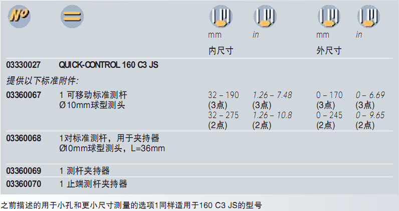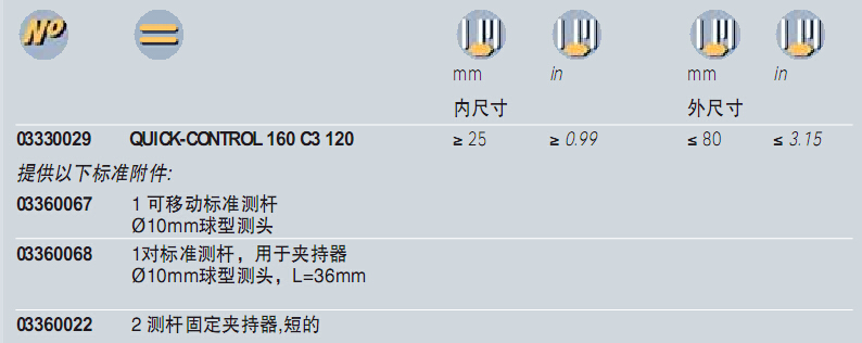 03360067 | 1可移動標準測桿,直徑10mm球型測頭 | | | | | |