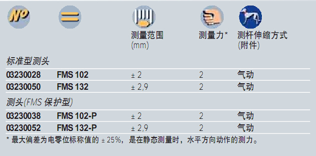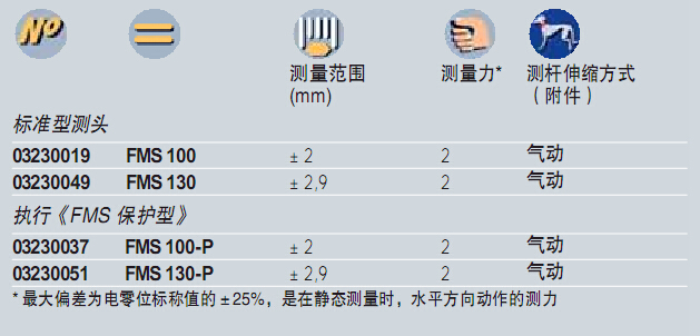 標準型、帶保護的FMS型測頭