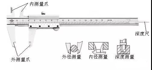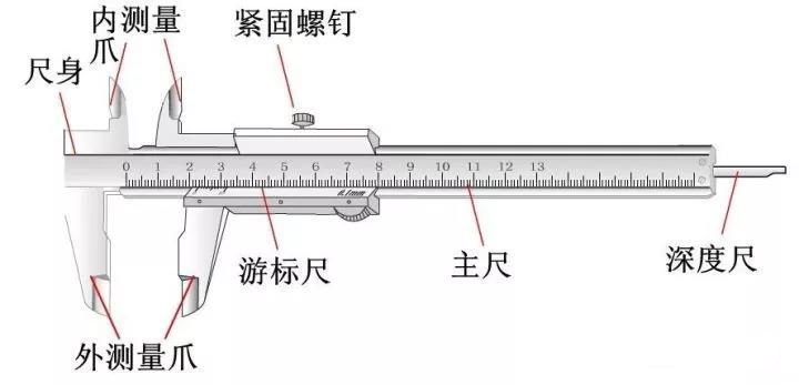 固定卡腳和主尺是一體,活動卡腳和副尺是一體,固定螺釘是用來固定副尺的。上卡腳測量內表面,下卡腳測量外表面。有的游標卡尺在主尺背面有深度尺,與活動卡腳一齊移動,可測量溝槽的深度。