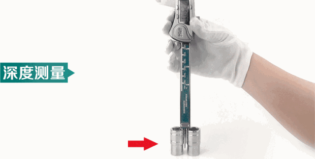 用深度游標卡尺測量機件深度時,將固定卡鉗與工件被測表面平整接觸,然后緩慢地移動副尺,使卡鉗與工件接觸。測量時用力不宜過大,以免硬壓游標卡尺而變形,影響測量精度和讀數的準確性。