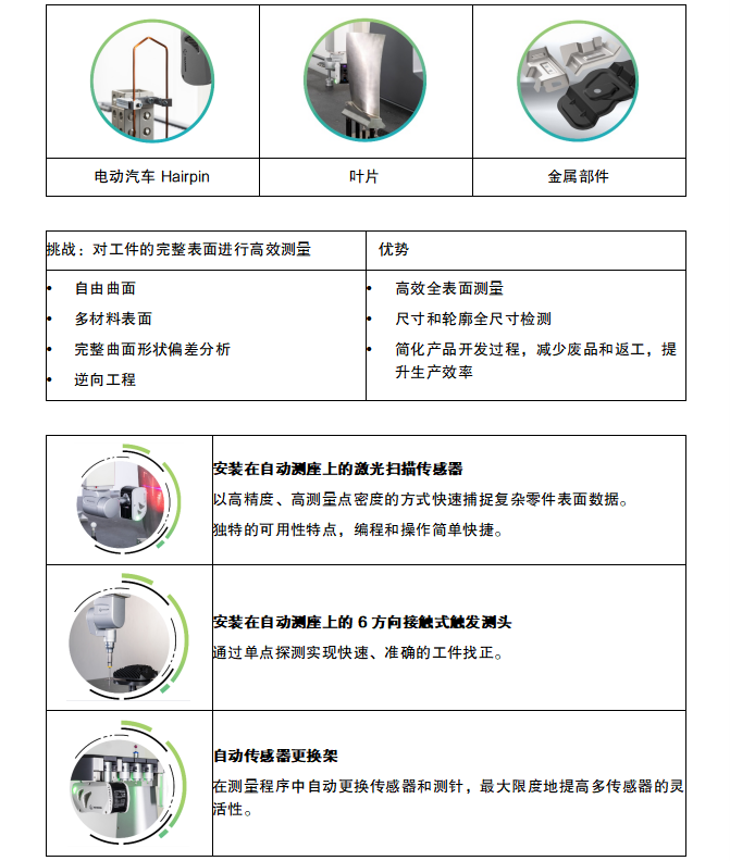 可同時或分別配置觸發、掃描、白光、激光、影像多種類型傳感器,以應對不同的測量任務,且測量周期內可實現不同傳感器間自動切換